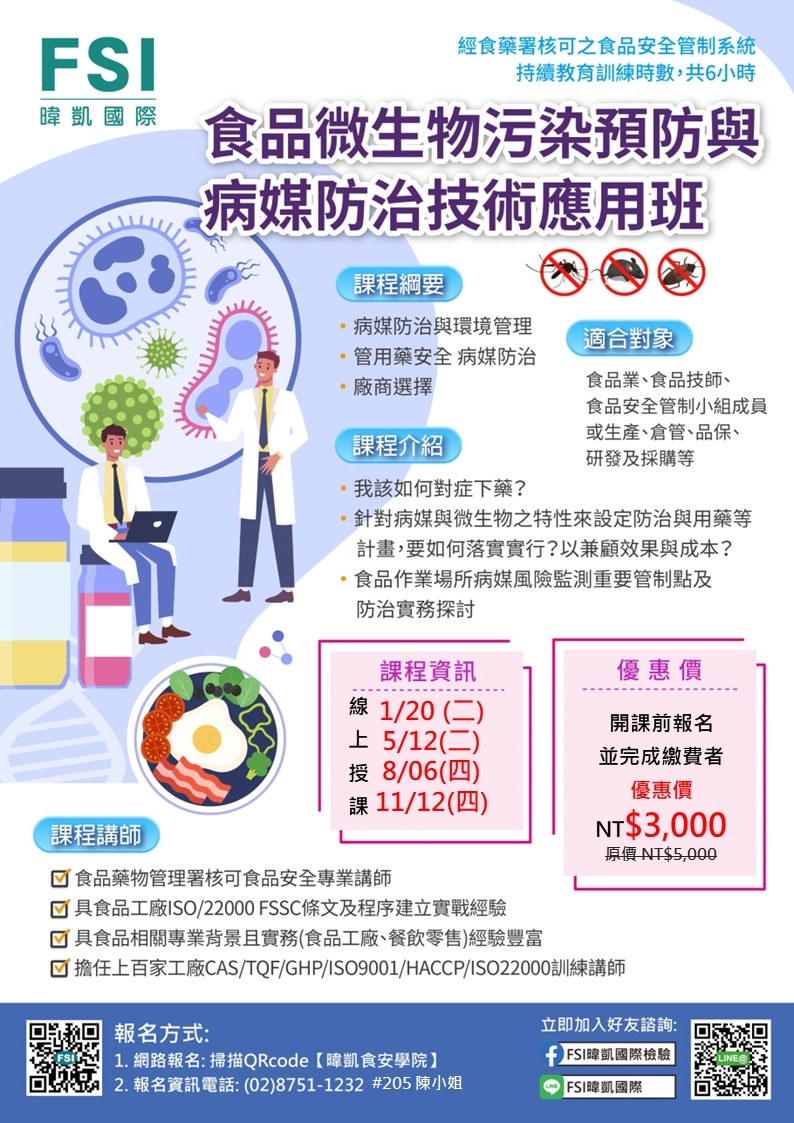 【FSI 暐凱食安學院】申請衛福部食藥署之持續教育訓練課程~ 開放報名中!~