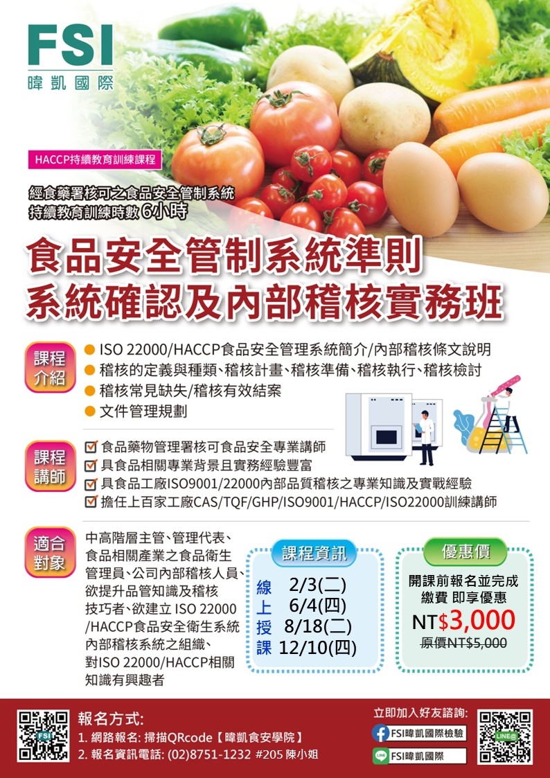 【暐凱食安學院】衛福部核可之持續教育訓練課程~ 開放報名中!~